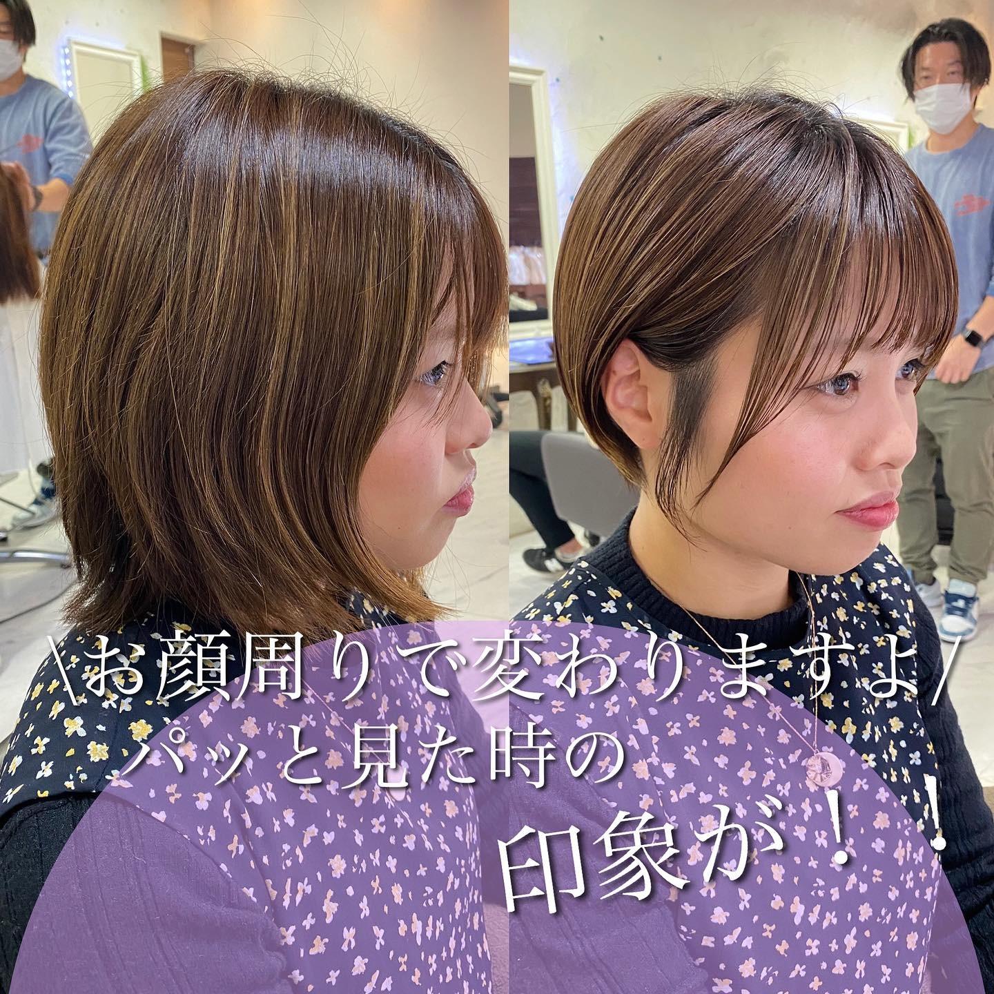 ☀️丸みショートボブ☀️ 前髪からサイドにかけてのつながりがとても大切☺️☀️ 前髪、お顔周りのカットもすごく大切にしています✨ .