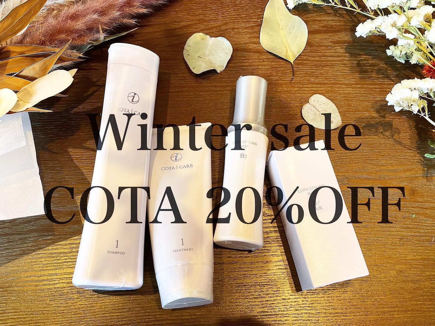 11月末までにご予約いただくとCOTAのシャンプー&トリートメント&アウトバスTRなどの商品が20%OFFとなります✨